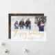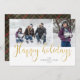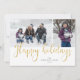Guld skript "Glad helg" i faux glitter med rustik vinterbackning av tartan mönster, 2 helgdag-kort.