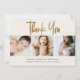 Ett hjärtligt tack med den här eleganten är baby tack vare ditt kort. Har ett modernt skript i guld, plats för tre anpassningsbar foton, baby namn, födelsestatus och ett personlig-meddelande. En tidlös keepé för dina kära.
