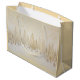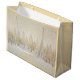 Elegant guld och silver Julgranar visas på en benvit bakgrund i den här vintagens vattenfärgsmålning. Sparka guld snöflingor faller på vintern under vintern. Den här återgivningen av eleganten finns på den här vinterpresentpåsen för helgdag för ge gåva.