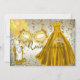 Masquerad Quinceañera-inbjudan. 15:e födelsedagen. Söt gnistra diamantmask och tiara med guld klänning och glitter klackar. Observera: Alla platta bilder, de har inga riktiga juveler!