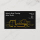 Stylized guld skisserar av en rollbacksabotör med en laddad pickup lastbil för fördjupad cab. Denna bogseravisitkort kunde användas by reparerar shoppar, bilförsäkring eller förkroppsligar shoppar reparerar.