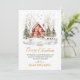Elegant Modern botaniska "God julScript non-Photo Helgdagskorts". De här festliga julkorten visar en fantastisk vattenfärgsdesign med en serensnövinter med ett charmigt byhus, ett vackert dekorerat Julgran runt. "God jul hälsning är glatt handskrivet i guld, vilket ger en sofistikerad beröring till den vita bakgrunden. Den omvända sidan adorberas med ett känsligt guld-snöflummen mönster mot en kraftig dammig grönt, vilket ökar festiviteten. Perfekt för anpassning, dessa helgdagskort för personlig är ett elegant sätt att skicka varmt önskemål till familj och vänner denna julsäsong.