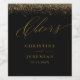 Dessa anpassningsbar chic bröllop vin flaska-märken kommer att ge er gästtacksamhet för era gåvor en aning elegans. Typografin har ett handskript med texten "Cheers" med namn och bröllop som ger dig en personlighet med gräns högst upp på faux guld glitter mot svart bakgrund. Bästa önskemål för bröllop och giftermål! Designad av Susan Coffey.