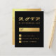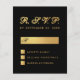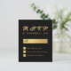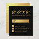 En OSA för elegantens budget för ett bröllop. med färg som är svart och guld bröllop. Bakgrunden är svart. Rubriken OSA är faux guld foil, resten av texten är gyllene, förutom brev M, dvs. svart. Rubriken OSA och brev M skrivs i ett kalligrafiskt skript för elegant, resten i versaler. Den rektangulära lådan för namn, de små fyrkantiga lådorna och baksidan är faux guld-folie.