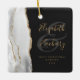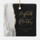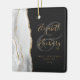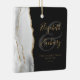 Den här eleganten har en modern dekoration med grått och vit vattenfärgad agatdesign som trimmas med faux guld glitter. Anpassa enkelt guld-färgad-texten på en svartvit bakgrund, med namnen på bruden och skum i den vita handskriftssymbolen över ett stort grått-ampersand. Orden "Första jultomten" visas i serieteckensnitt tillsammans med anpassadet.
