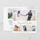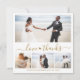 "Kärlek och tack" Hand skrev Eleganten med skript hjärta, minimalistiskt Bröllop fotokollage - tack för ditt kort i guld och vitt. En enkel söt bröllop-kortmall med fyra (4) foto på framsidan och ett foto på baksidan. Med texten "Kärlek och tack" i ett söt-handskrivet skrivteckensnitt för svan-typografi. Lägg till ditt namn och tack.