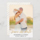 Den här eleganten sparar datumfunktionerna för skuggning av skript i faux guld-folie med en strimlad baksida och mycket utrymme för ytterligare bröllop-information, som till exempel din bröllop webbplats eller information om inkvartering. Ladda upp ett eget foto och anpassa informationen så att du får information om bröllop.