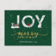 Modern Grönt Elegant Guld Script JOY Snö Overlay Scenery Helgdag Card. Skicka semesterhälsningar till dina nära och kära med den moderna naturtypen stil-helgdagskort som inte har fotodesign. Alla texterna är i förväg ordnade så att du enkelt och snabbt kan anpassa dig med dina egna detaljer. Glad helg!