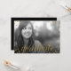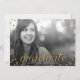 En modern studenteninbjudan som presenterar ett foto av ditt akademikert med guld- glitterlookbokstäver och konfettiar. Baksidaen kan användas som en inbjudan till en studentfest eller göras klar för att använda precis som ett meddelande.