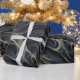 Guld abstrakt rök snurrande mönster på svart med akvatisk accent färg