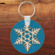 Guld Snöflake på Blue Helgdag Keychain Nyckelring