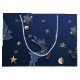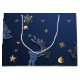 En elegant guld snöflingor, blå Julgran och renar i blå botten.