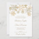 Jultemat bröllopsinbjudan med guld snöflingor. Perfekt för elegant vinterbröllop och andra säsong- och helgdagar-evenemang.
