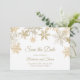 Vinterbröllopet sparar eleganten med datumkortet med guld snöflingor. Perfekt till jul-bröllop och andra säsong- och helgdag-evenemang.