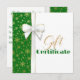Utformningen av lyxen och riken helgdag med fantastiska julklaffsbågar och gyllene snöflingor mönster på gröntens bakgrund. Det här festliga presentcertifikatet är perfekt för ditt småföretag eller för presentvänner och familj.