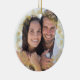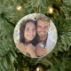 En cirkel av ornat guld snöflingor ramar, ditt eget foto på framsidan av denna Helgdag. Baksidan av prydnadsämnet har samma snöflinga ram med anpassningsbarna i rött och guld. Enkel och elegant, och en vacker showcase för ditt eget foto.