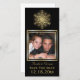 Guld snöflummel på svart vinterbröllop Spara datumfotokortet som har en gyllene snöflake på svart bakgrund och ditt foto i ett guldfärgat ram. Denna personlig är en komplett mall för anpassade och ingår i en perfekt med bröllop för en vinter eller jul i bröllop.