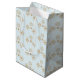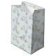 Giftpåse med en festiv helgdag som upprepar mönster i chic guld snöflingor, ritad med kristallform av elegant. En frostiskt ljusblå bakgrund.