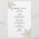 Anpassa elegant Guld Snowflake på Winter Wedding Menu (vita vinter-bröllopsmenu) med de uppgifter som du kommer att vid din måndag i december, januari eller februari möhippa, giftermål-middag eller bröllop brunch genom att tillsätta sallad eller första kurs, inträde eller andra kurs och dessert eller tredje kurs. Anpassa den med namnen av brudgummen, platsen och händelsemedatum. Den här elegant anpassningsbar Wintery bröllop-menyn har funktioner som gör att guld färgad snöflingor lägger till hörnen med vit bakgrund.