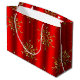 En elegant, dekorativ röd julklapp och julklapp i guld med en lyxig mönster av metallisk guld-julstjärna (eller julstjärnor) över en snyggt och feg röd bakgrund.