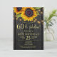 Rustic land 60-födelsedagsfestens inbjudan till snyggt på mörk brun barrträ med stor gult-solblommor, stativ av tvillingskål ljus och ett faux-guld typografi-skript. +++++++++++++++ Enkel att anpassa med dina uppgifter! Du kan välja att anpassa det ytterligare genom att ändra typsnitt och färg på text. +++++++++++++ Inbjudan är lämplig för utomhusträdgård/trädgårdsskötsel land brunch/barbecue sommar- eller höstfallsmilstolpar födelsedagsfester