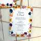 Färgfull blommigt Blanda gräns den här bröllopsinbjudan. Blå och plommon lila calla lilies, solblommor från guld och rosa proteablommor är perfekten bouquet för dina fallbröllopsinbjudningar. Blommigt gräns omfattar till och med ro och orangens tigerliljor. Den här fallande inbjudan till solrosbröllop är mångsidig för indigo-, orange- och magenta färg-blandningar.