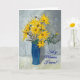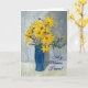 En nätt mors dag med hälsningen i walesiskt och en blåttvas av guld- solrosor, från en olje- pastellfärgad målning av Judy Adamson.