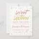 Elegant & modern Sweet 16 ( sexton ) Födelsedagsfest "Save the Date"-design med Guld & Rosa-Gnistra Confetti Dots-motif, samt anpassad namn och detaljtext. Lätt att använda och lätt att anpassa. Ordna i dag!