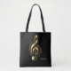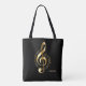 Modern glansig guld treble clef med anteckningar på svart bakgrund. Valfritt monogram
