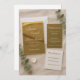 Förhöj din speciella dag med denna lyxiga bröllopsinbjudan i guld och akryl. Med en reflekterande guldfinish och graverad kalligrafi, innehåller denna eleganta brölloppssvit huvudinbjudan, svarsblankett och detaljerad informationskort. Designad i modern minimalistisk stil med eukalyptusdetaljer och rustika lyxdetaljer, är det det perfekta valet för tidlösa, sofistikerade bröllop. Perfekt för par som söker en unik, exklusiv inbjudan för att imponera på gästerna.