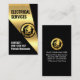 Ett svart hölje har en guld-strålkastare som lyser med ljus på namn "ELECTRICAL SERVICES" och en logotyp för hemmanätet guld som du kan använda med. Nära kortets bas hittar du kontaktinformationen. Logotypen guld ligger överst, följt av ditt prestigefyllda namn, kontaktuppgifter och ett sloganbildningsalternativ. Ett underbart kort för elektriker till användan. #elektriker #Electricalservices #electricalentreprener #electricalEnginer #electricaltechnier #electricbulb #prob #plug #electricpower #electricalwiring #zazzlemade