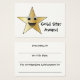 Kortet har en stjärna i färgaden i guld med en rolig leende ansikte på ena sidan med texten "Guld Star Award" och på andra sidan ställe till skriva i barnets namn, datum och bedrift. Ett användbart objekt för klassrumsläraren.