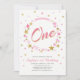 Fira en speciell dag med denna lilla stjärna, första födelsedagsinbjudan! Den här designen har en söt stjärnkrans i skuggor av rosa och guld struktur.