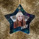 Framsidan av den här stjärnformade prydnadsformen håller ditt student bild i ett ram som matchar formen på prydnadsföremålet. Student-året ligger i silver grått vid grundens höger av fotot, och allt är inramat i ett fantastiskt guld stjärna-studerade universum. Baksidan av dekorationen har samma universum-tema, där mittstjärnan håller anpassningsbarna blå. Få student att känna sig som en stjärna!