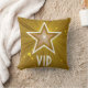 Modern design med en "strålande" guld och vit stjärna på en "glödande" bakgrund. Dekorativ kudde med ett anpassade som du kan anpassa med din egen text, bilder och dina idéer. Det här är en digitalbild som skapas med originalfotografier och digitalteknik och som trycks på tyg, som inte skiner eller innehåller riktiga miniatyrbilder.