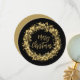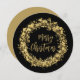 Guld-stjärnor, cirklar och punkter på en svart bakgrund omger ord "God jul" på framsidan och hälsning och namn på baksidan. MATCHING-objekt i vår butik.