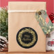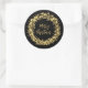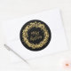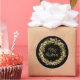 Väntande guld-stjärnor, cirklar och prickar runt ord "God jul" på svarta, runda klistermärken är perfekt för din helgdag ge och mer. MATCHING-objekt i vår butik.