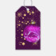 Den här märkrn med Helgdag ger en frambild av en söt lila och en silver-dekorerad julklampa mot en guld-stjärna fylld nattetid i himlar. Baksidan av märkrn matchar guld med anpassningsbarna i lila.