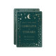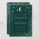 Forest Grönt Guld Celestial Save the Date Card with QR Code - Denna inbjudan är inte äkta guld-folie - det är en digital design för dem som föredrar nedladdningar och icke-präglade utskrifter. Men samma objekt finns också i vår samling med äkta guld-folie för ett blankt och präglat avsluta. Med den här eleganten sparar du datumkortet i bröllop i celestial stil. Med en djup bakgrund för grönt i skogen med gyllene måne, stjärnor och leksaksdetaljer blandas tidlös charm med modern bekvämlighet. På baksidan finns en QR-kod för anpassadet som länkar direkt till webbplatsen för bröllop och som skapar det enkelt för gästerna att få tillgång till all information. Tryckt design, ingen riktig folie.