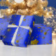 En papper helgdag med en spridning av gyllene stjärnor över en metallblå bakgrund för att ge lite mer glädje åt firandet under julen i år.