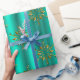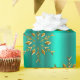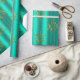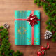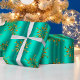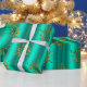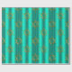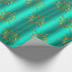 En mycket elegant och snyggt guld och en mycket papper julomslutning med ett mönster av metallisk snöflingor från guld (eller julstjärnor) som är spridd över en glansig teal/akaka-bakgrund, för att lägga till en sofistikerad beröring till din gåva som omsluter denna jul.