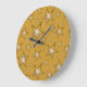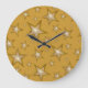 Modern design med "skuggande" guld och vita stjärnor på mörkens gult bakgrund. Väggklocka med en utformning av anpassadet som du kan anpassa med din egen text, bilder och dina idéer. Observera att detta är en tryckt bild som skapats med originalfotografier och digitalteknik, som inte skiner eller innehåller riktiga miniatyrbilder.