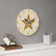Modern design med en "skuggande" guld och vit stjärna på en mörk gräddbakgrund. Väggklocka med en utformning av anpassadet som du kan anpassa med din egen text, bilder och dina idéer. Observera att detta är en tryckt bild som skapats med originalfotografier och digitalteknik, som inte skiner eller innehåller riktiga miniatyrbilder.