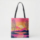 Upptäck en surrealistisk scen med en solnedgång i guld över rosa sjö, framtagen av blått träd och en svart linje gräns i en lätt kartoonistisk konst stil (denna design gjord med AI). Ställe beställer i dag och Kämpa på köpet!