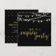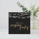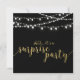 Fira din speciella dag med denna stilrena överraskningsfest-inbjudan mall. Denna design har chic guld texturerad kalligrafi & strängljus med svart bakgrund. Perfekt för en modern bakgård bröllopsjubileum fest.
