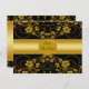 Praktfull gyllene metallisk blomma & blommor på svart med ett gyllene band och plats för text eller monogram. Perfekt för bröllop, årsdag eller förlovning.