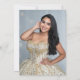 Denna eleganta Quinceañera-inbjudan har glittrande ballonger i olika nyanser av guld och svart med guld ballong nummer 15. Fallande strömband och konfetti i svart och guld fullbordar feststämningen. Baksidan visar ditt favoritfoto. Lätt att anpassa genom att klicka på "Personalisera".