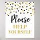 Vänligen hjälp dig själv skylt för baby shower, bröllopsfest, födelsedagsfest eller bröllop i ett svart och guld konfetti mönster.