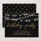 Fira din speciella dag med denna stilrena moderna födelsedagsinbjudan. Designen har vackra strängljus med en guld & svart färgtema.