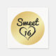 Rund papper napkin har nummer 16 i ett öppet hjärta med söt text ovan.